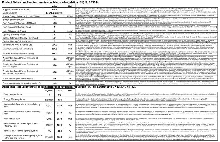Technische Informationen der Elica ILLUSION NO MOTOR WH A100 Decken Esse