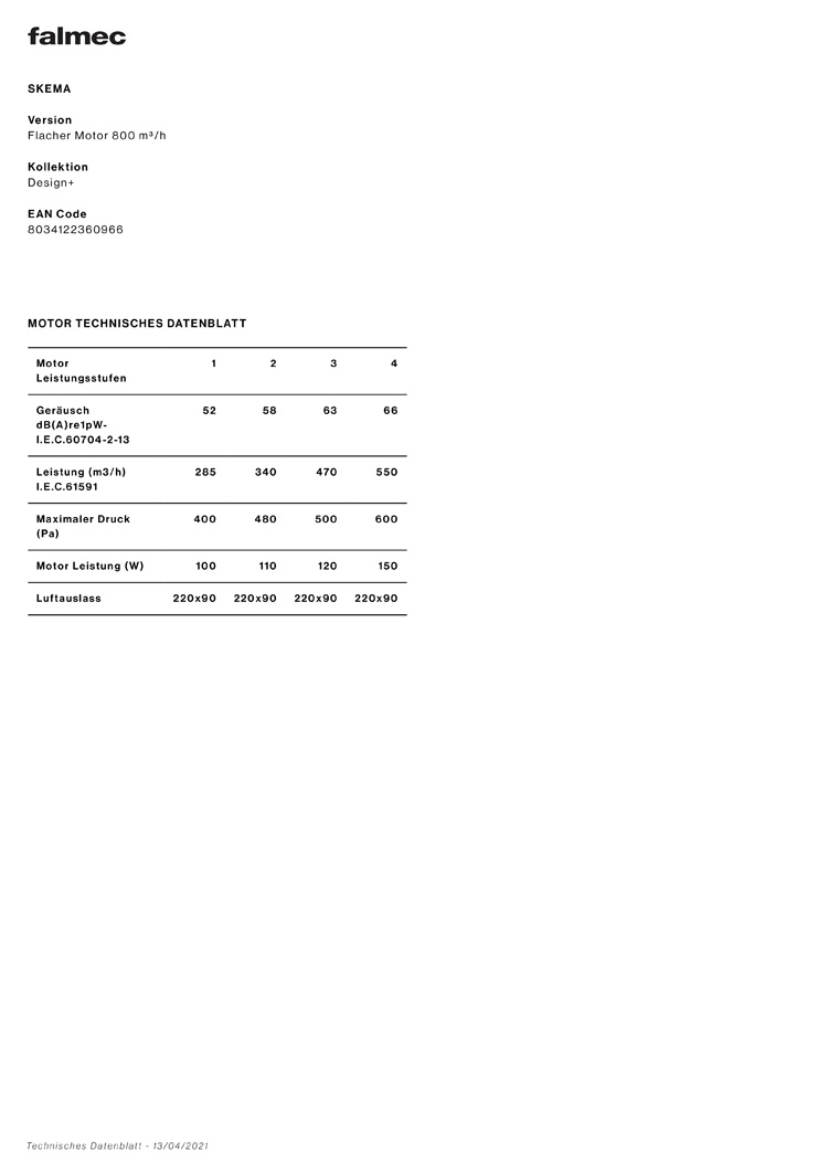 - für falmec-MotorenFalmec bietet eine breite Palette von Motoren an, je nach Notwendigkeit. Neben dem Aspekt der Effizienz, wird auch spezielles Augenmerk auf Lärmminderung gelegt, um so einen höheren Komfort in der Küche zu erreichen.(müssen separat bestellt werden, siehe Sonderzubehör)