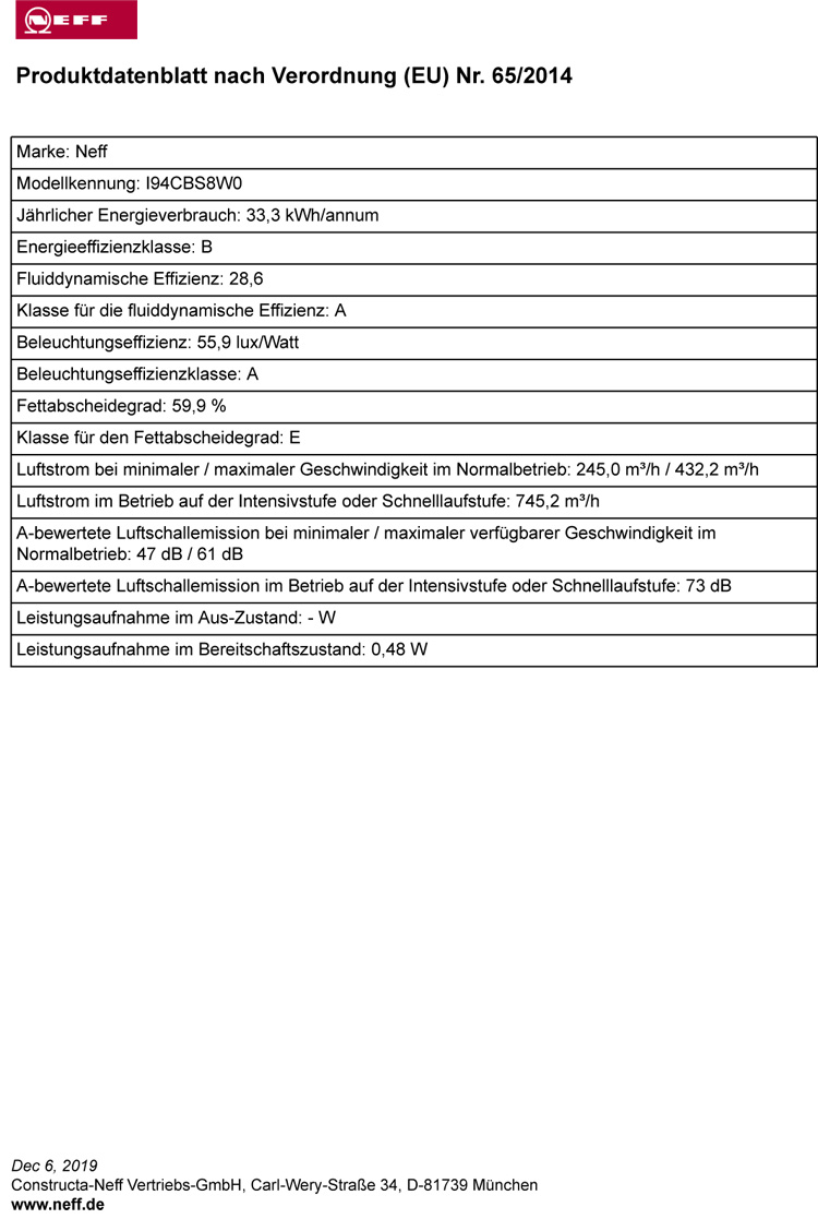 - Gebläseleistung bei Intensivstufe-Abluftbetrieb (m³/h): 745 m³/h