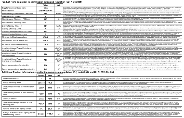 Ausstattung der Elica Skydome H 16 A 100 Decken-Haube PRF 0147735B
