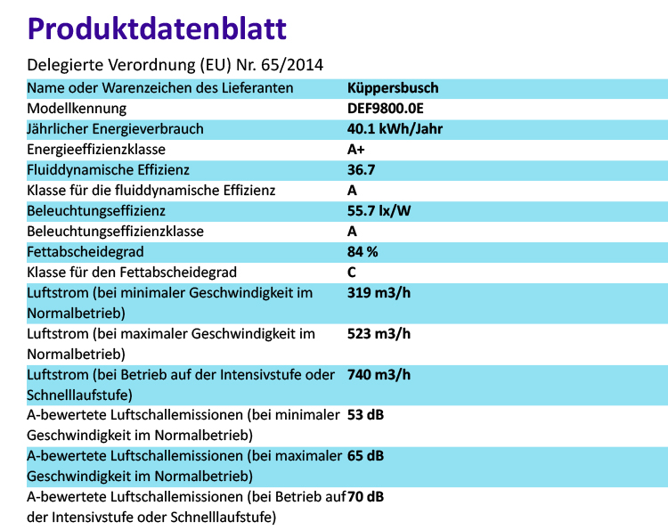 - Gebläseleistung im Abluftbetrieb: max. Normalstufe 498 m³/h, Intensivstufe 706 m³/h