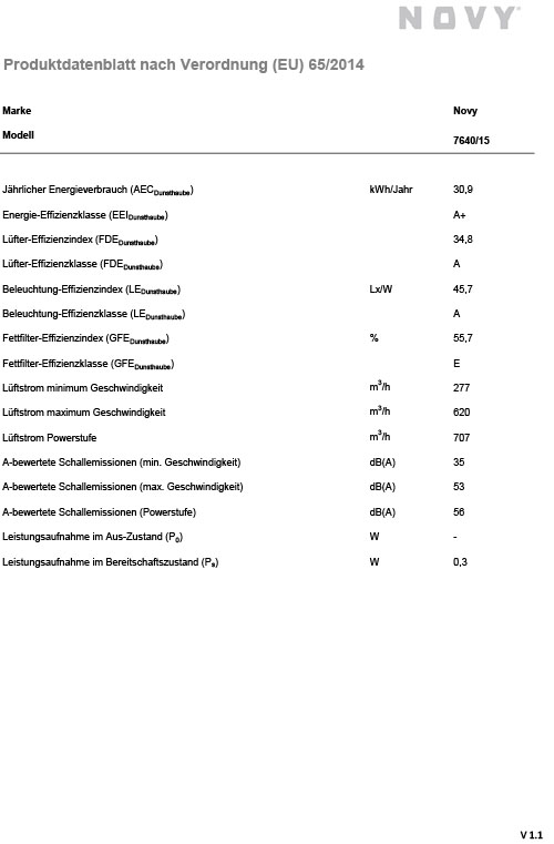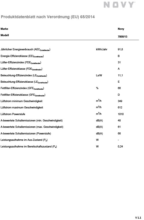 - Austausch gegen einen gleichwertigen oder neuen Artikel Novy Flat'line 7660 Inselhaube, Edelstahl Inselhaube(ggf. auch ein Nachfolgemodell)