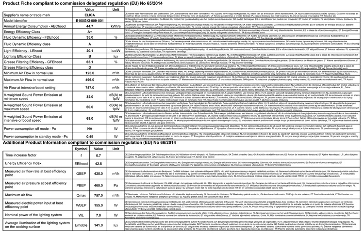 Ausstattung der Elica Bio W H A-90-ROVERE Wand-Haube PRF 0148081