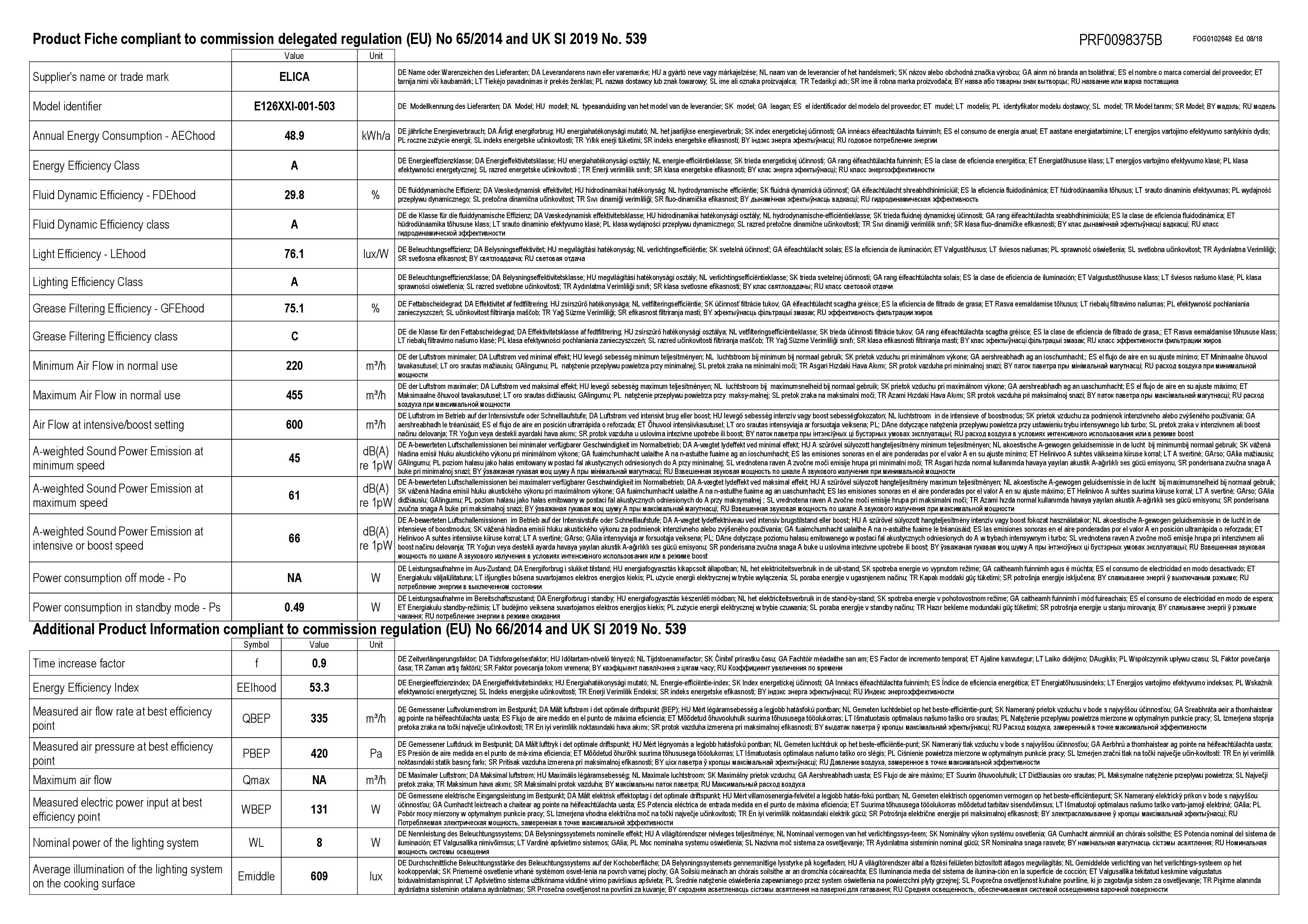 - Fettfilter-Effizienzklasse: C