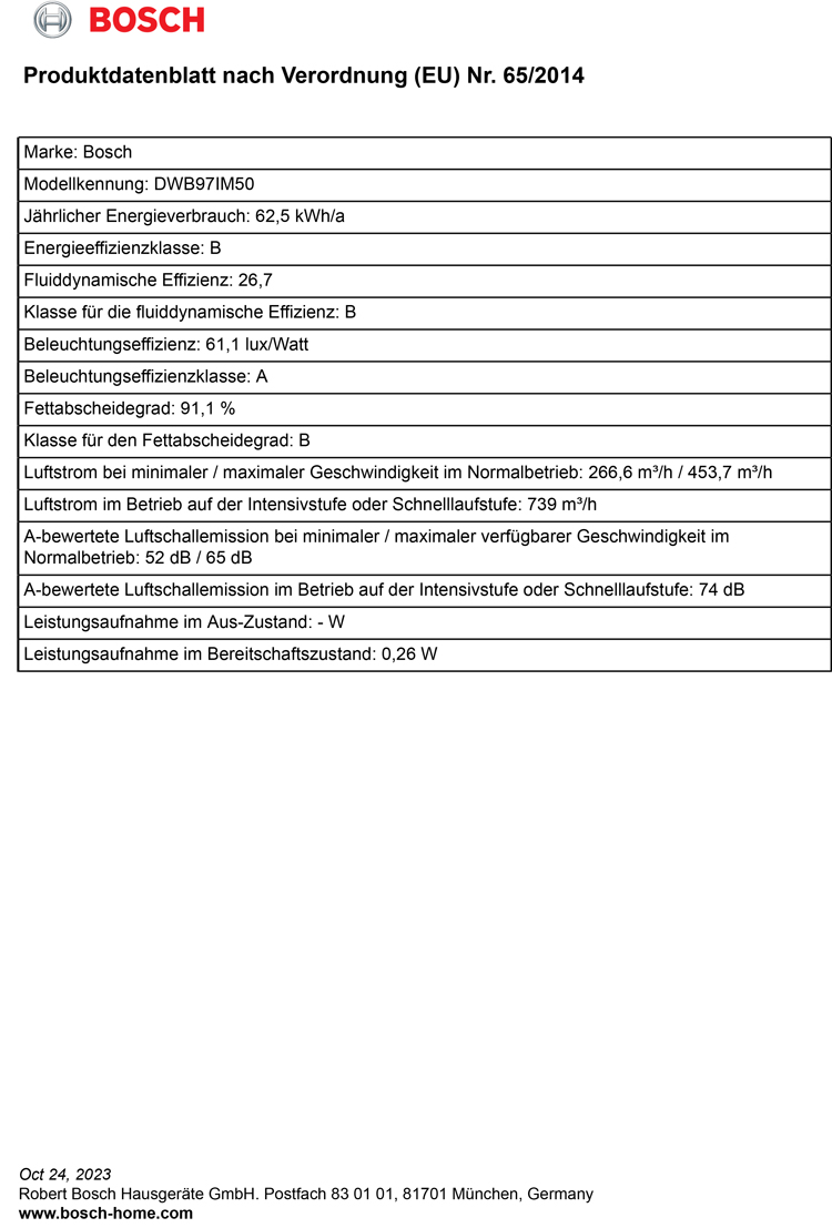- Gebläseleistung bei Intensivstufe-Abluftbetrieb: 739 m³/h
