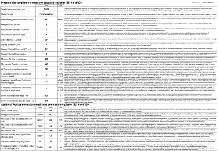 Technische Informationen der Elica Spot Plus Island I-X A90 Insel Esse PRF 0097 373A