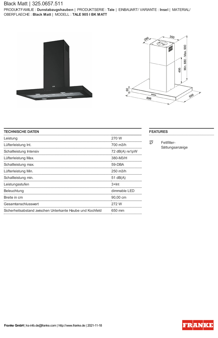 - Lüfterleistung Int: 700 m3/h