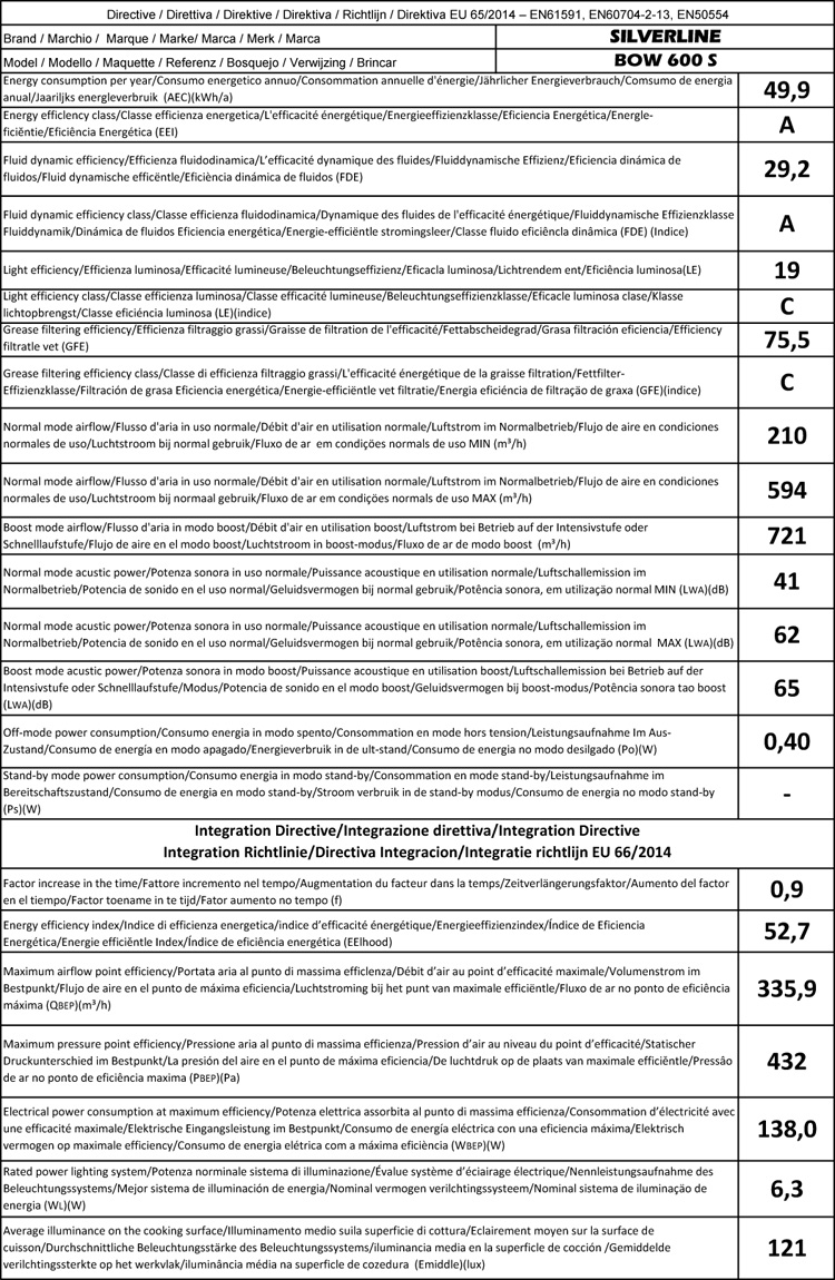 - gemäß EU-Regulierung 65/2014 - EN61591, EB60704-2-13, EN50554