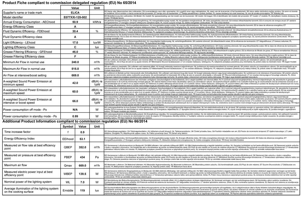 Technische Informationen der Elica OmAir W-H F75 Wand Esse