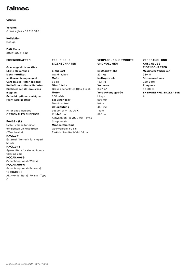 - Mindestabstand: Elektrisches Kochfeld: 53 cm / Gaskochfeld: 53 cm