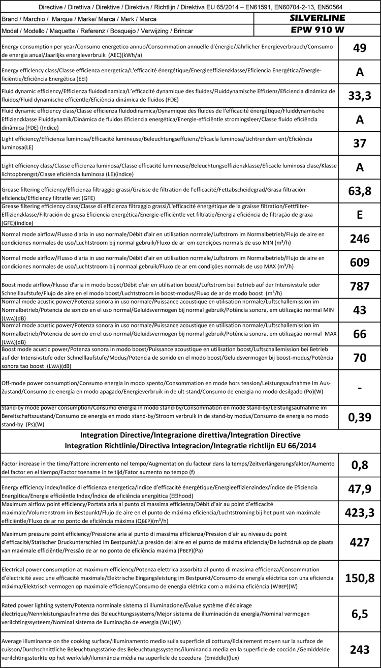 - gemäß EU-Regulierung 65/2014 - EN61591, EB60704-2-13, EN50554