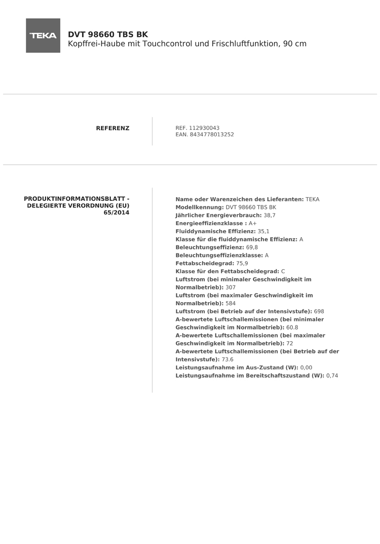 - Reparatur des Artikels Teka DVT 98660 TBS BK, Wandhaube, schwarz, 90 cm, oder