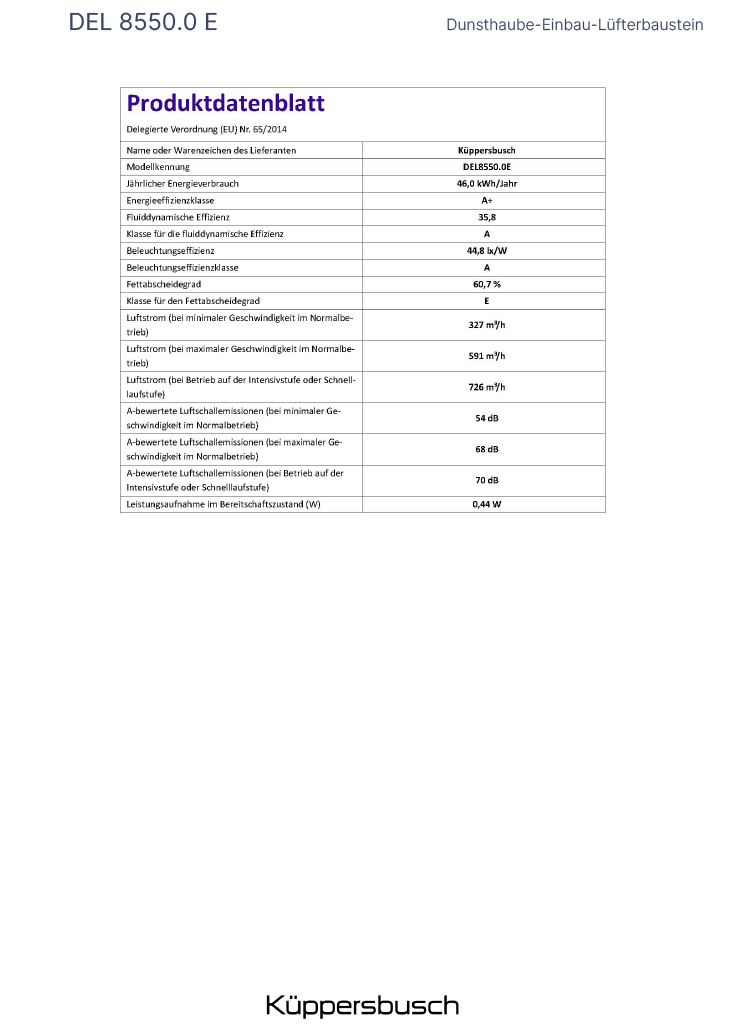• Austausch gegen einen gleichwertigen oder neuen Artikel Küppersbusch DEL 8550.0 (ggf. auch ein Nachfolgemodell).