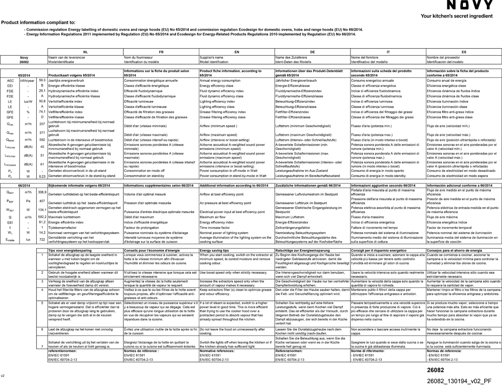 - Motorleistung Abluft max. Powerstufe (m³/h) (Qboost) / max. Druck Abluft max. Powerstufe (Pa) 592 / 559