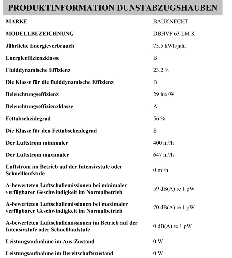 - Betriebsgeräusch im Abluftbetrieb: min. 59 – max. 70 dB(A)