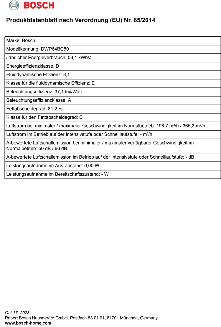 - Geräuschwerte nach EN 60704-2-13 max. Normalstufe Abluftbetrieb: Geräusch, höchste Normal-Stufe: 66 dB dB(A) re 1 pW
