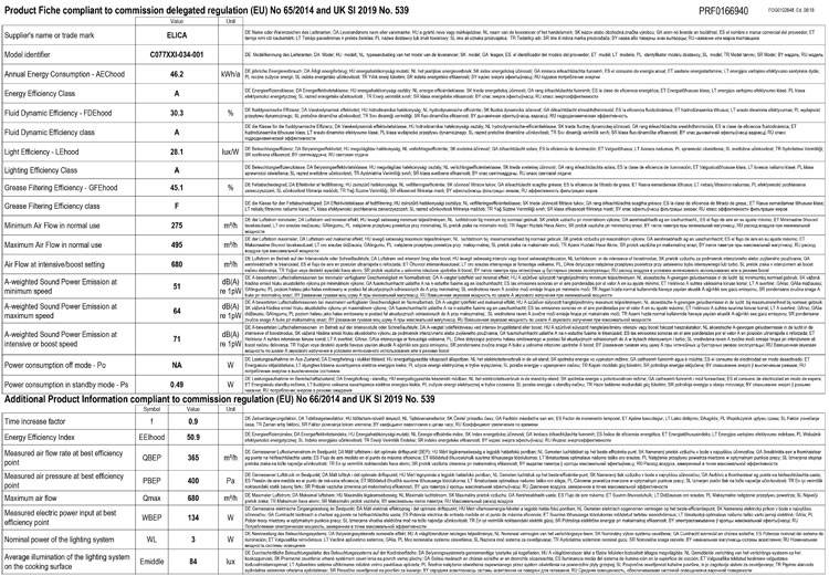 Technische Informationen der Elica APLOMB WH/A/60 Wand Esse