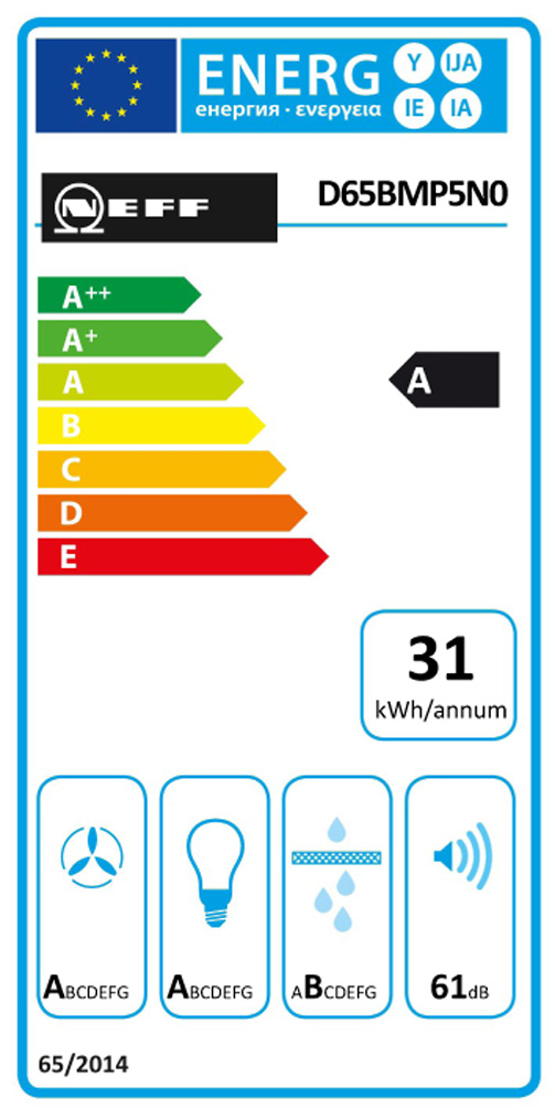 - Energieeffizienzklasse: A (auf einer Energieeffizienzklassen-Skala von A++ bis E)