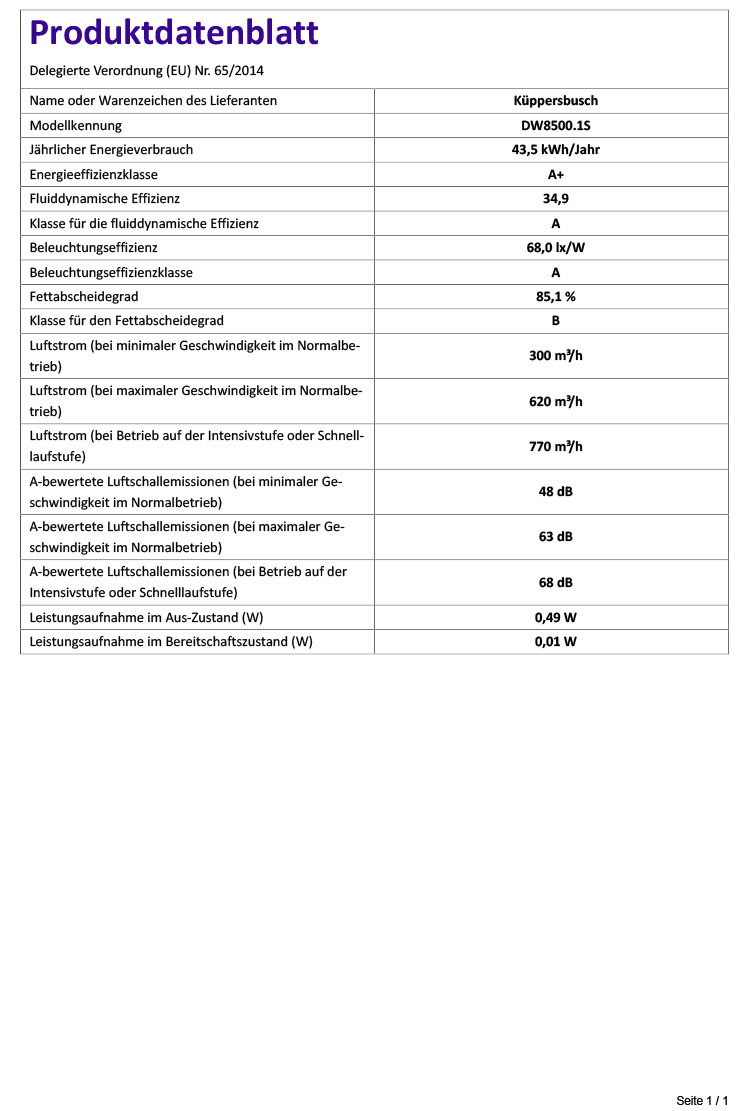 • Austausch gegen einen gleichwertigen oder neuen Artikel Küppersbusch DW 8500.1 (ggf. auch ein Nachfolgemodell).
