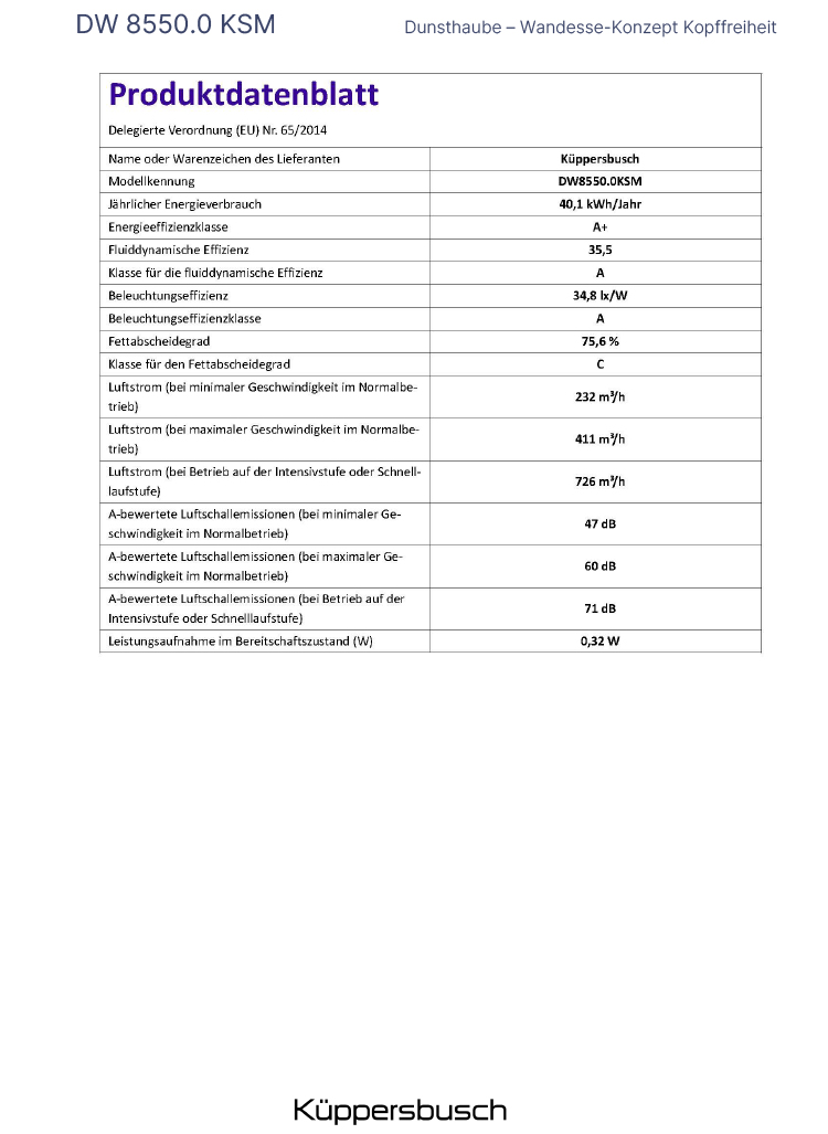 • Austausch gegen einen gleichwertigen oder neuen Artikel Küppersbusch DW 8550.0 (ggf. auch ein Nachfolgemodell).