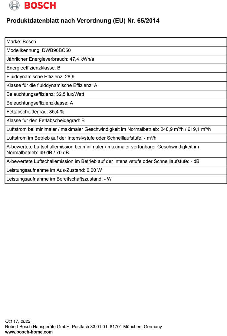- Geräuschwerte nach EN 60704-2-13 max. Normalstufe Abluftbetrieb: Geräusch, höchste Normal-Stufe: 70 dB dB(A) re 1 pW