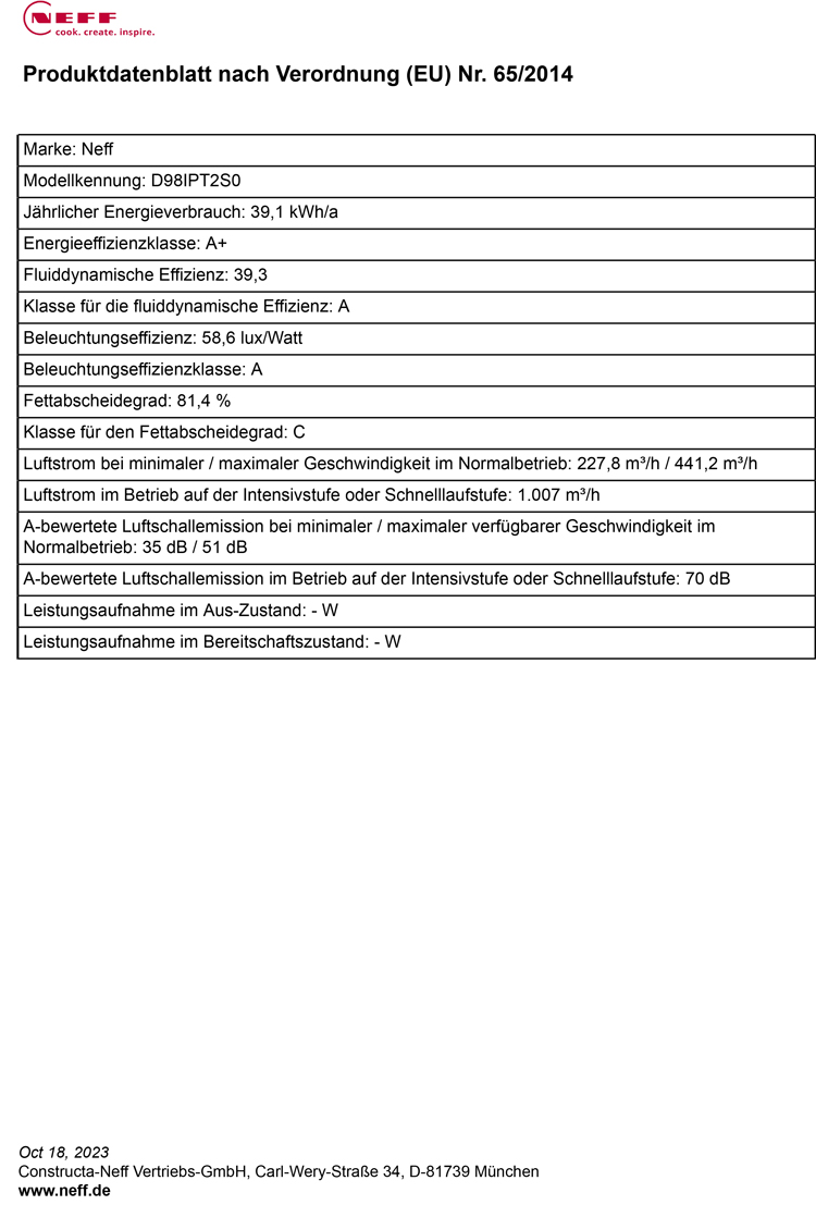 - Leistungsstufe 3: Lüfterleistung: 441 m3/h; Geräuschwert: 51 dB (A) re1pW