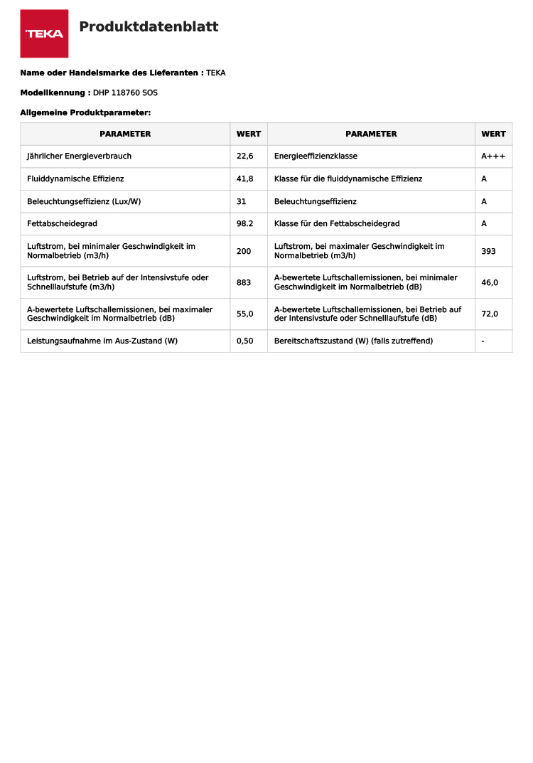 - Austausch gegen einen gleichwertigen oder neuen Artikel Teka DHP 98760 SOS, Wandhaube, Edelstahl, 90 cm (ggf. auch ein Nachfolgemodell)
