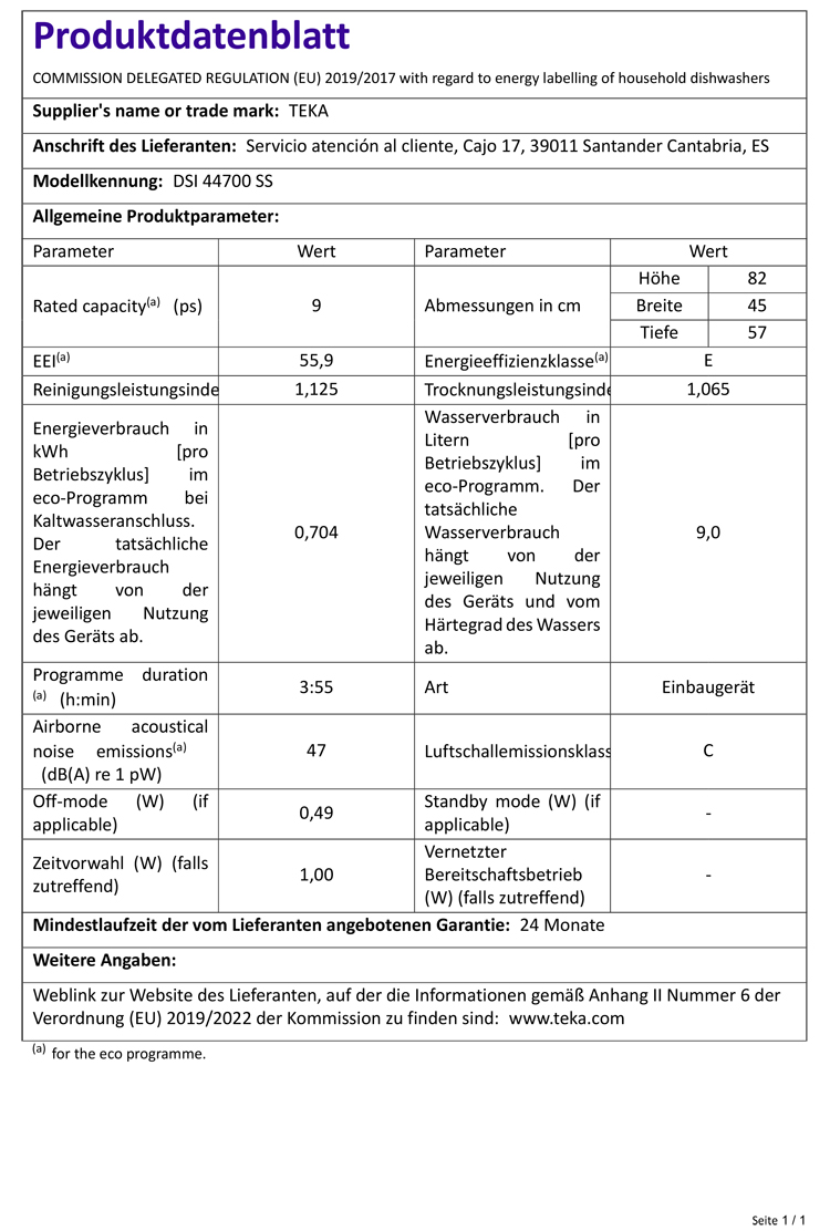 - Austausch gegen einen gleichwertigen oder neuen Artikel Teka DSI 44700, Geschirrspüler vollintegriert, 45 cm (ggf. auch ein Nachfolgemodell)
