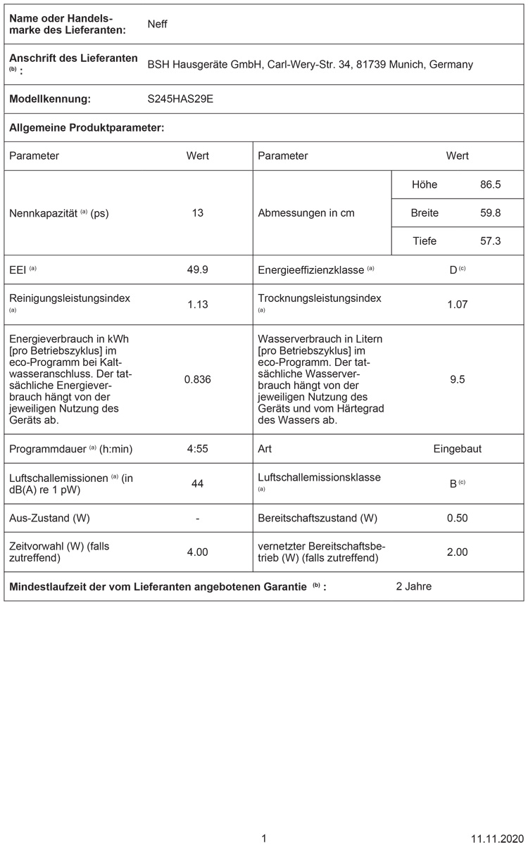 - Energie/Wasser²: 0.836 kWh / 9.5 l