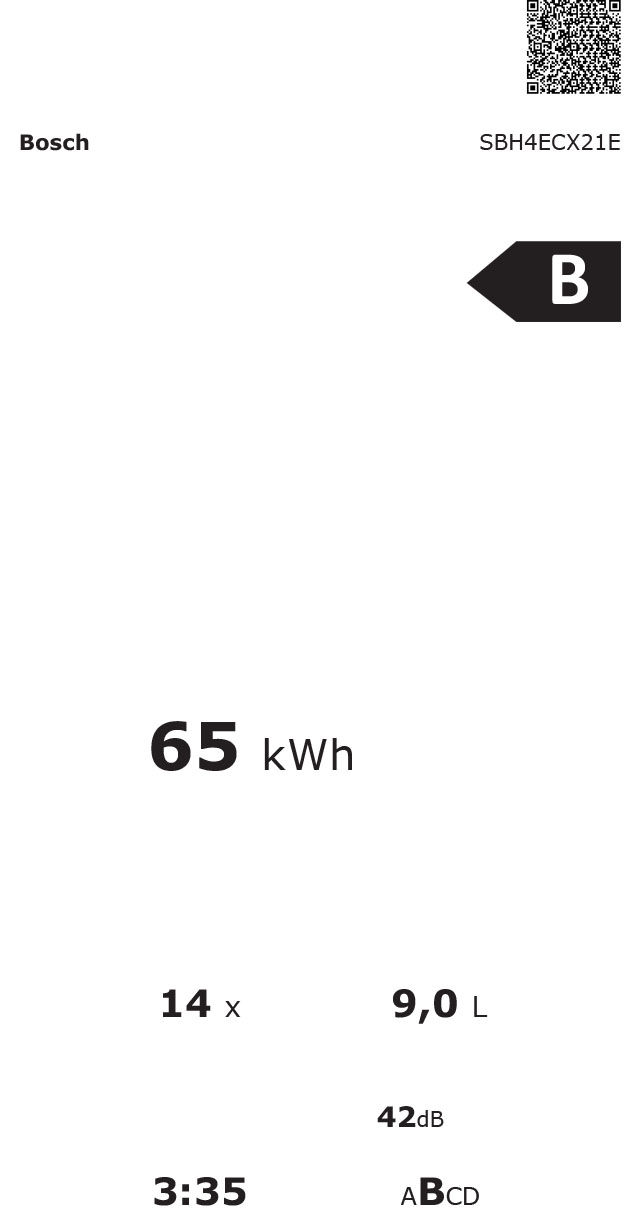 - Energieverbrauch des eco-Programms pro 100 Betriebszyklen: 65 kWh