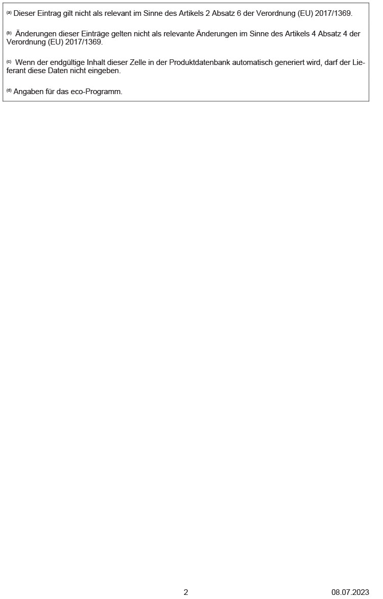 - Energieverbrauch des eco-Programms pro 100 Betriebszyklen: 85 kWh