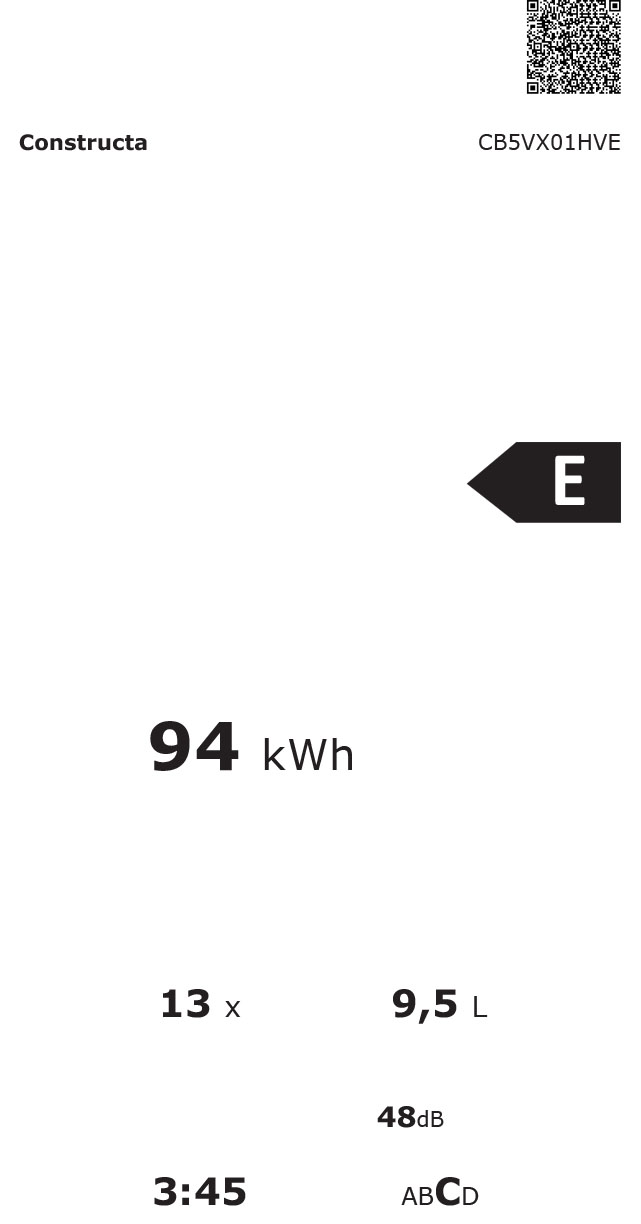 - Luftschallemissionen (EU 2017/1369): 48 dB(A) re 1 pW
