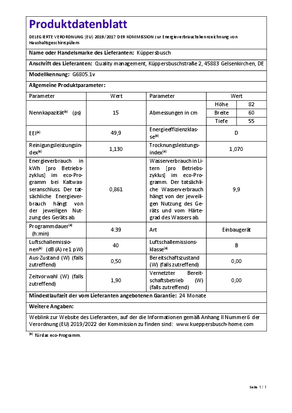 • Austausch gegen einen gleichwertigen oder neuen Artikel Küppersbusch G 6805.1 (ggf. auch ein Nachfolgemodell).