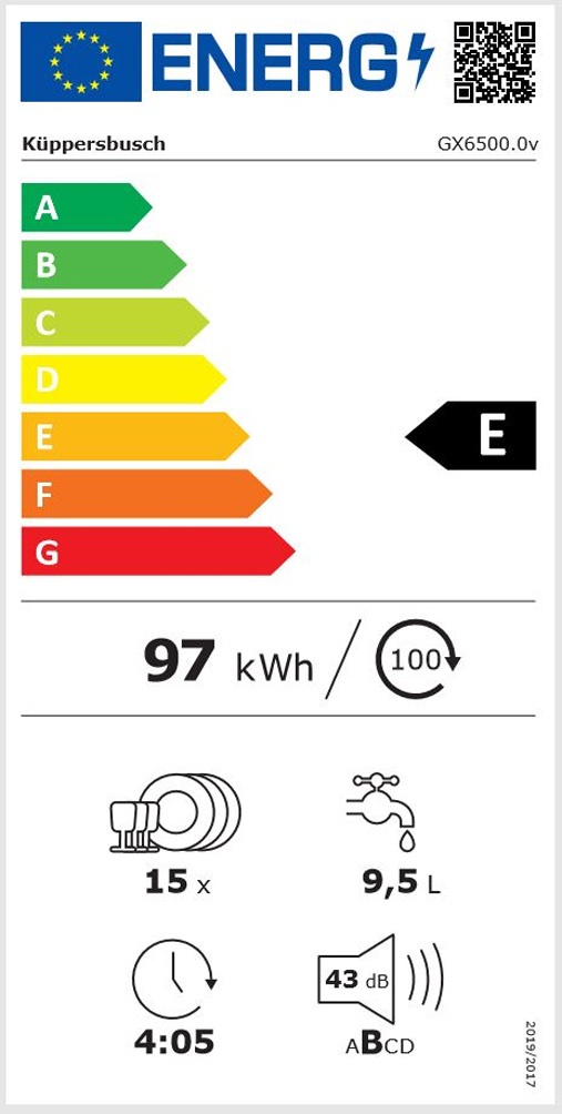 - Energie-Effizienz-Klasse: E auf einer Skala von A (höchste Effizienz) bis G (geringste Effizienz)