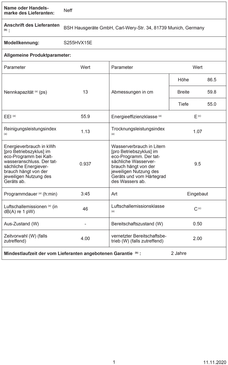 - Energie/Wasser: 0.937 kWh / 9.5 l