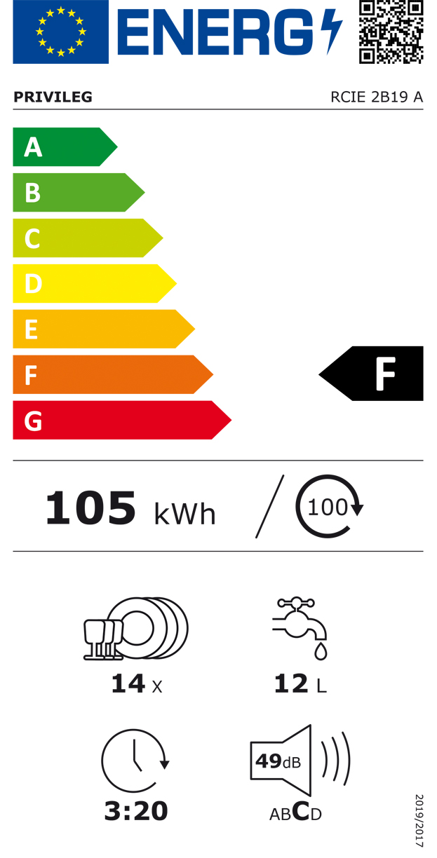 - Energieeffizienzklasse F, Reinigungsleistungsindex 1,13, Trocknungsleistungsindex 1,07