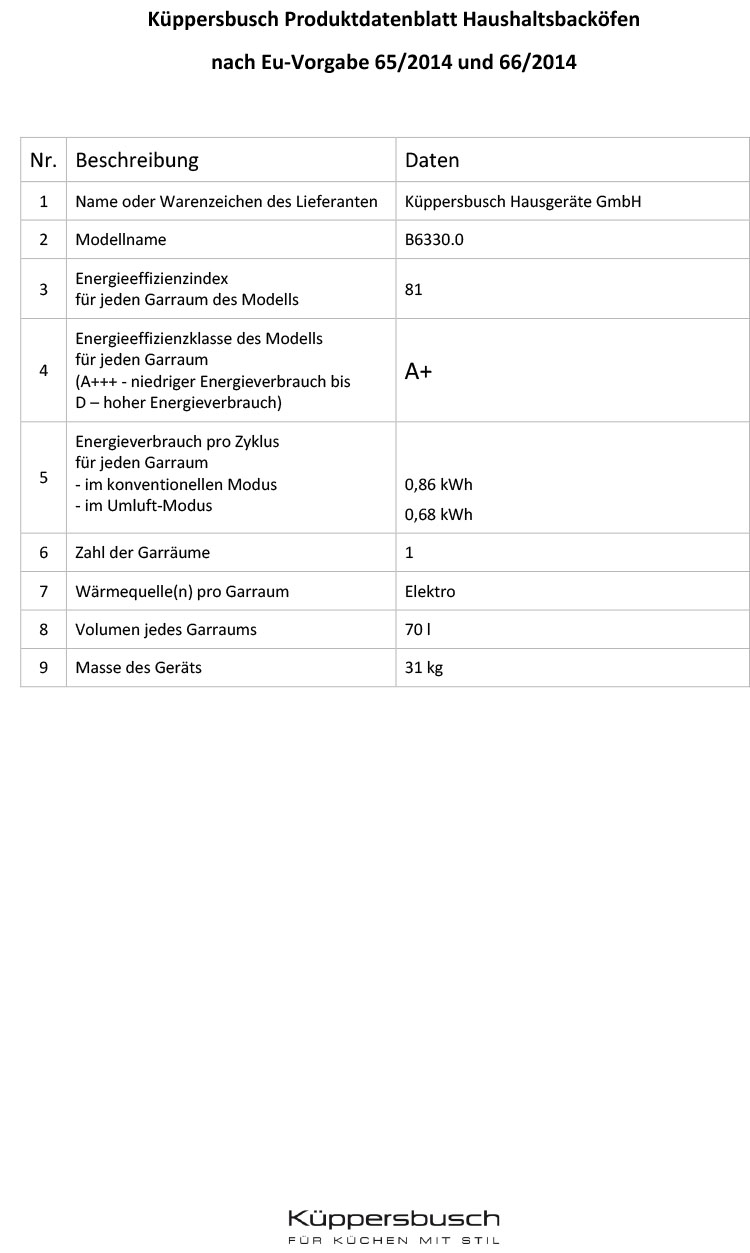 • Austausch gegen einen gleichwertigen oder neuen Artikel Küppersbusch B 6330.0 (ggf. auch ein Nachfolgemodell).