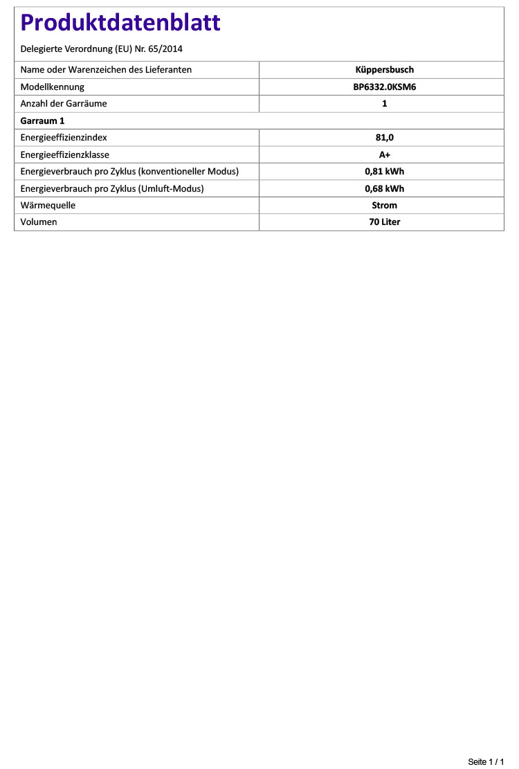 • Austausch gegen einen gleichwertigen oder neuen Artikel Küppersbusch BP 6332.0 (ggf. auch ein Nachfolgemodell).