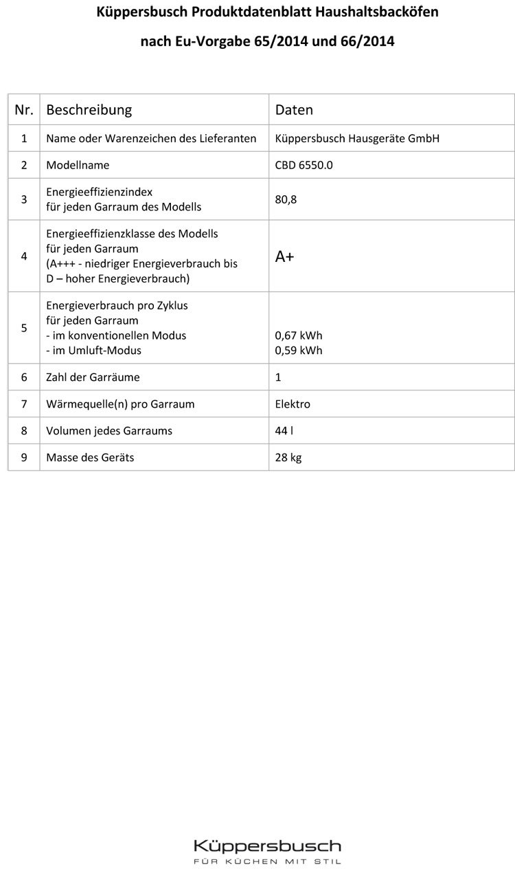 • Austausch gegen einen gleichwertigen oder neuen Artikel Küppersbusch CBD 6550.0 (ggf. auch ein Nachfolgemodell).