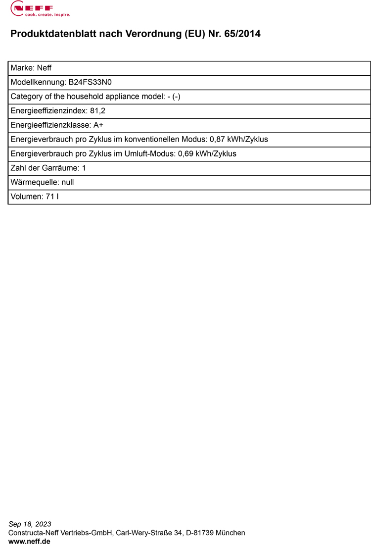 - Energieeffizienzklasse (gem. EU Nr. 65/2014): A+ (auf einer Energieeffizienzklassen-Skala von A+++ bis D)