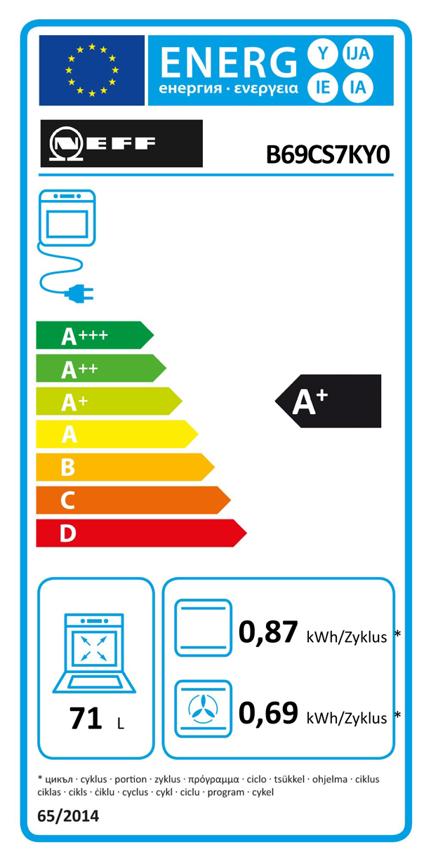 - Energieeffizienzklasse (gem. EU Nr. 65/2014): A+ (auf einer Energieeffizienzklassen-Skala von A+++ bis D)