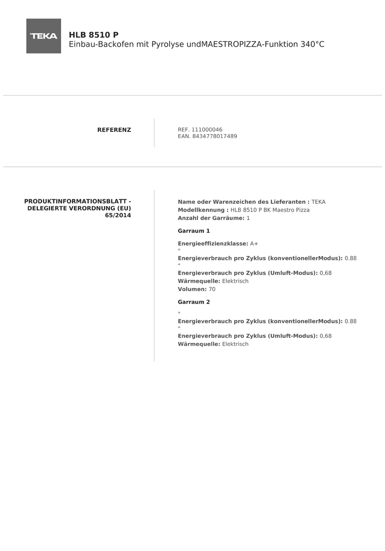 - Austausch gegen einen gleichwertigen oder neuen Artikel Teka HLB 8510 P MaestroPizza, Einbau-Backofen mit Pyrolyse und MAESTROPIZZA-Funktion, EEK: A+ (ggf. auch ein Nachfolgemodell)