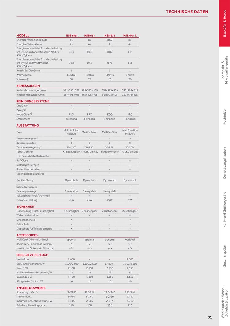 - 6 Beheizungsarten inkl. Umluft