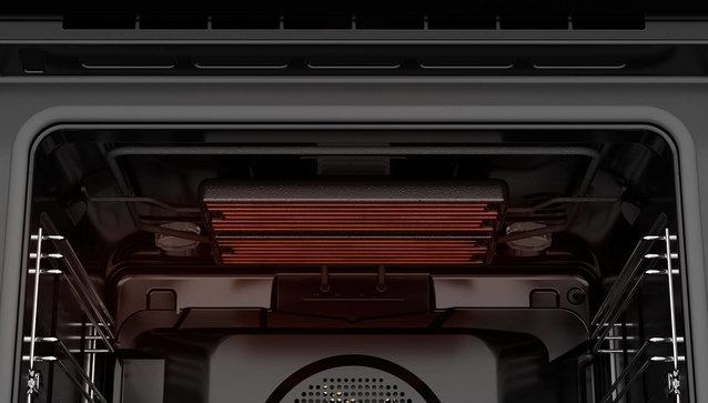 12 Beheizungsarten: Ober-/Unterhitze, Grill/Unterhitze, Grill, Großflächengrill, Ober-/Unterhitze mit Umluft, Pizza, Unterhitze, Heißluft, Auftauen, Niedertemperaturgaren, ECO, Fermentieren