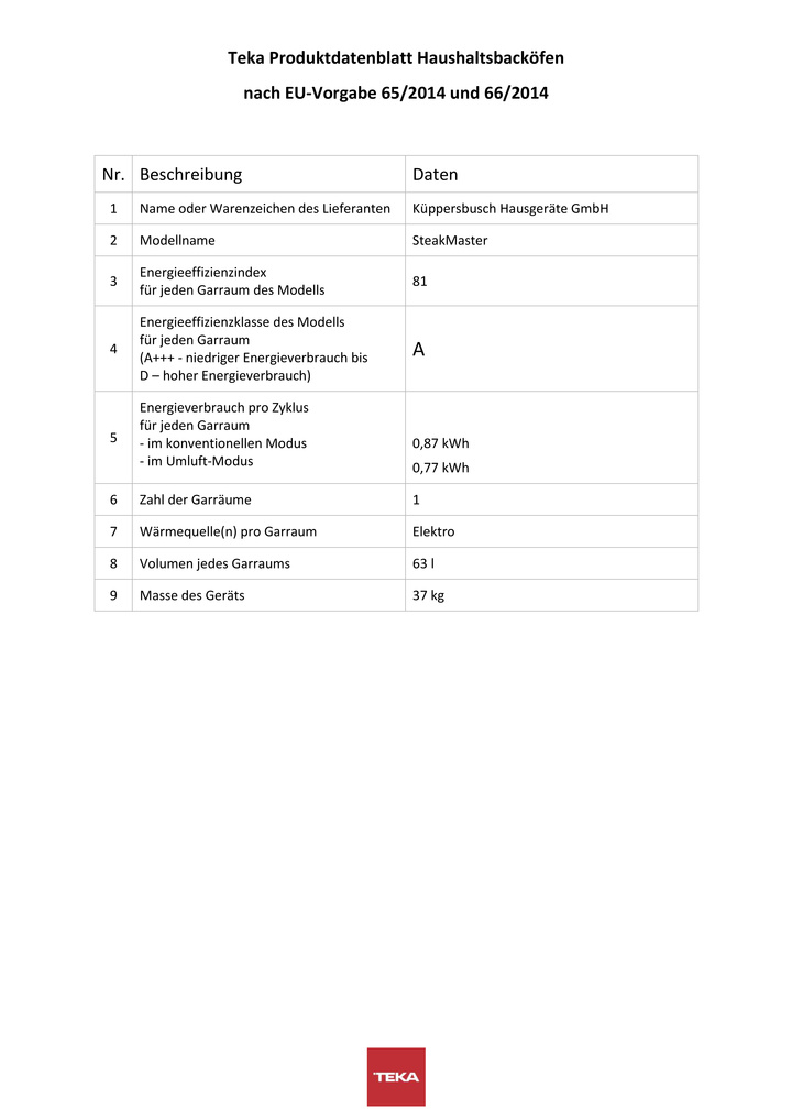 - Austausch gegen einen gleichwertigen oder neuen Artikel Teka SteakMaster, Backofen schwarz (ggf. auch ein Nachfolgemodell)