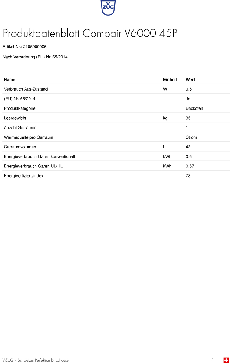 - Austausch gegen einen gleichwertigen oder neuen Artikel V-ZUG Combair V6000 45P, Pyrolyse, WLAN, 2105900006 (ggf. auch ein Nachfolgemodell)