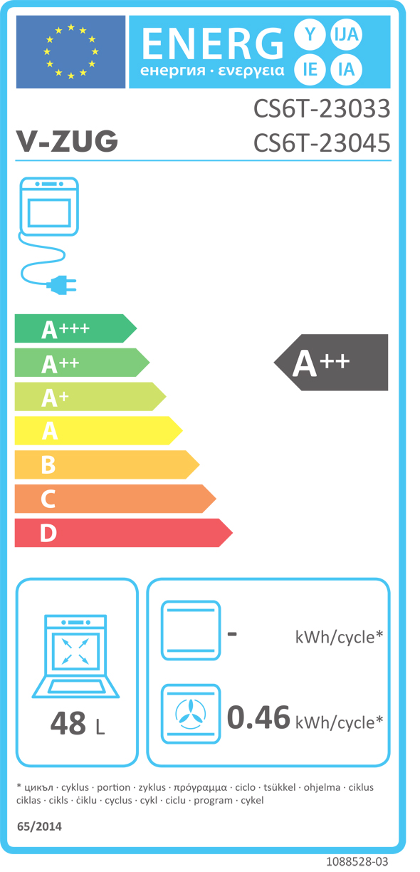 - Energieverbrauch Garen UL/HL 0.46 kWh