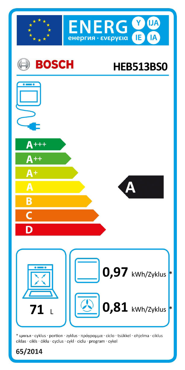 - Energieeffizienzklasse (gem. EU Nr. 65/2014): A (auf einer Energieeffizienzklassen-Skala von A+++ bis D)