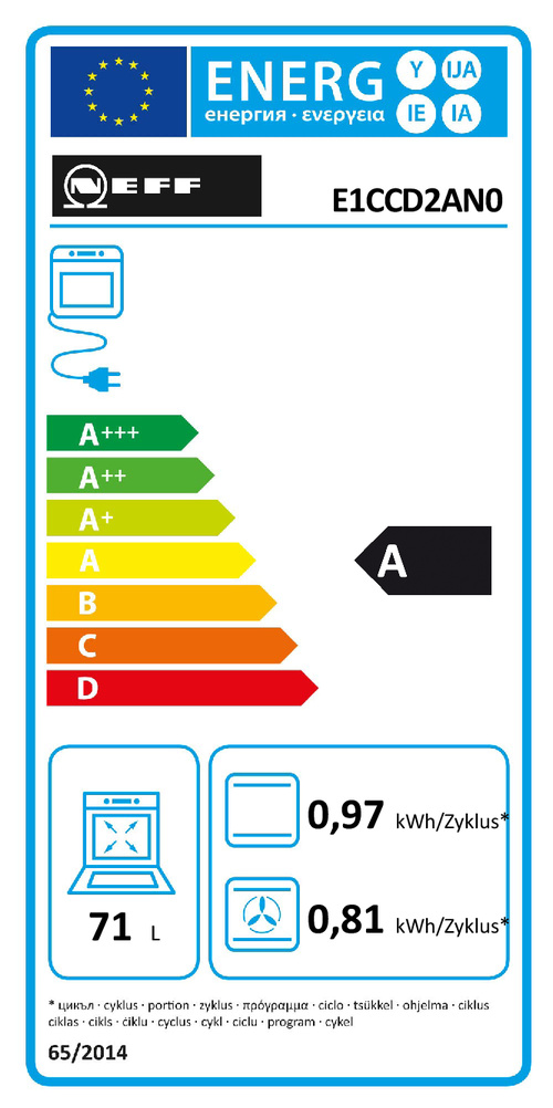Energieeffizienzklasse (gem. EU Nr. 65/2014): A