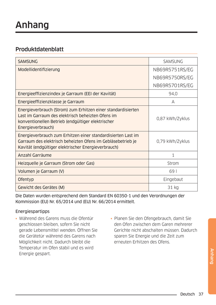 - Art des Backofens Einbaubackofen
